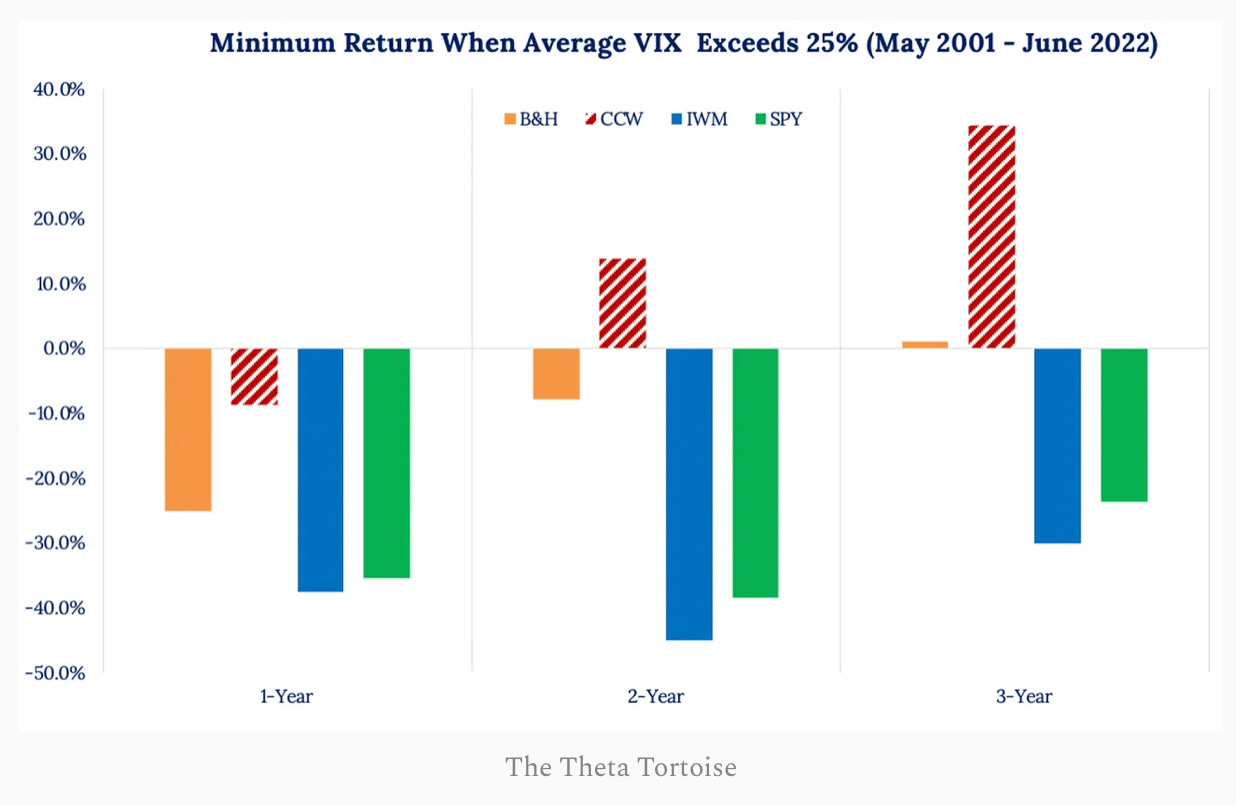 the benefits from selling premium compound over time, and ideally when there’s decent/normal implied volatility (18-20% VIX);